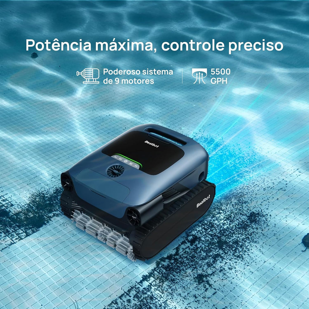 Enquanto você aproveita o dia, ele escova, aspira, filtra e mapeia cada centímetro da piscina com precisão, removendo folhas, areia, insetos, resíduos e impurezas invisíveis que deixam a água opaca.